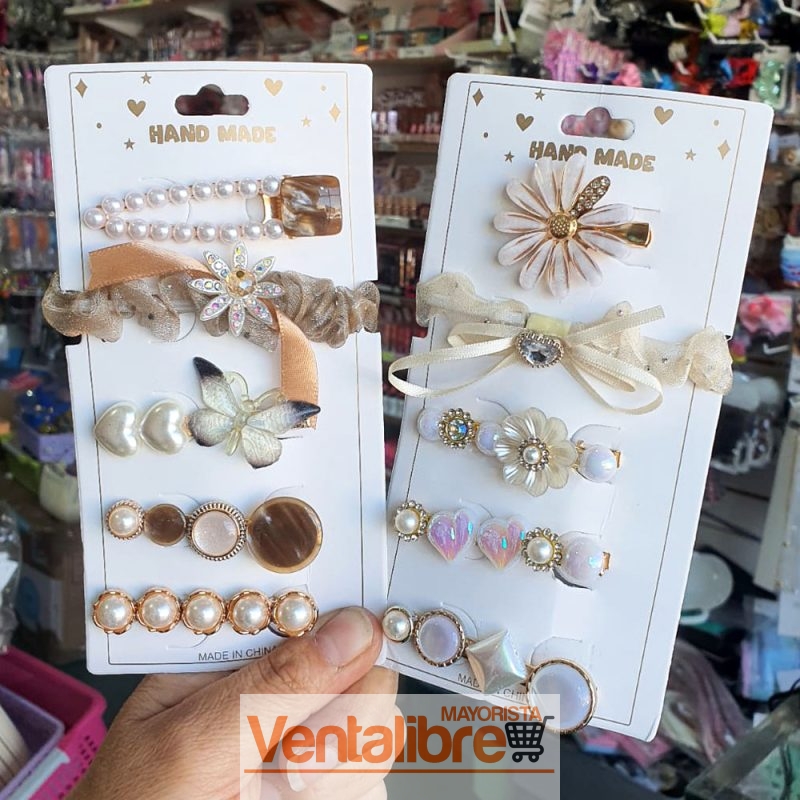 SET DE HEBILLAS PARA EL CABELLO CON DISEÑOS DE PERLAS Y MOÑOS