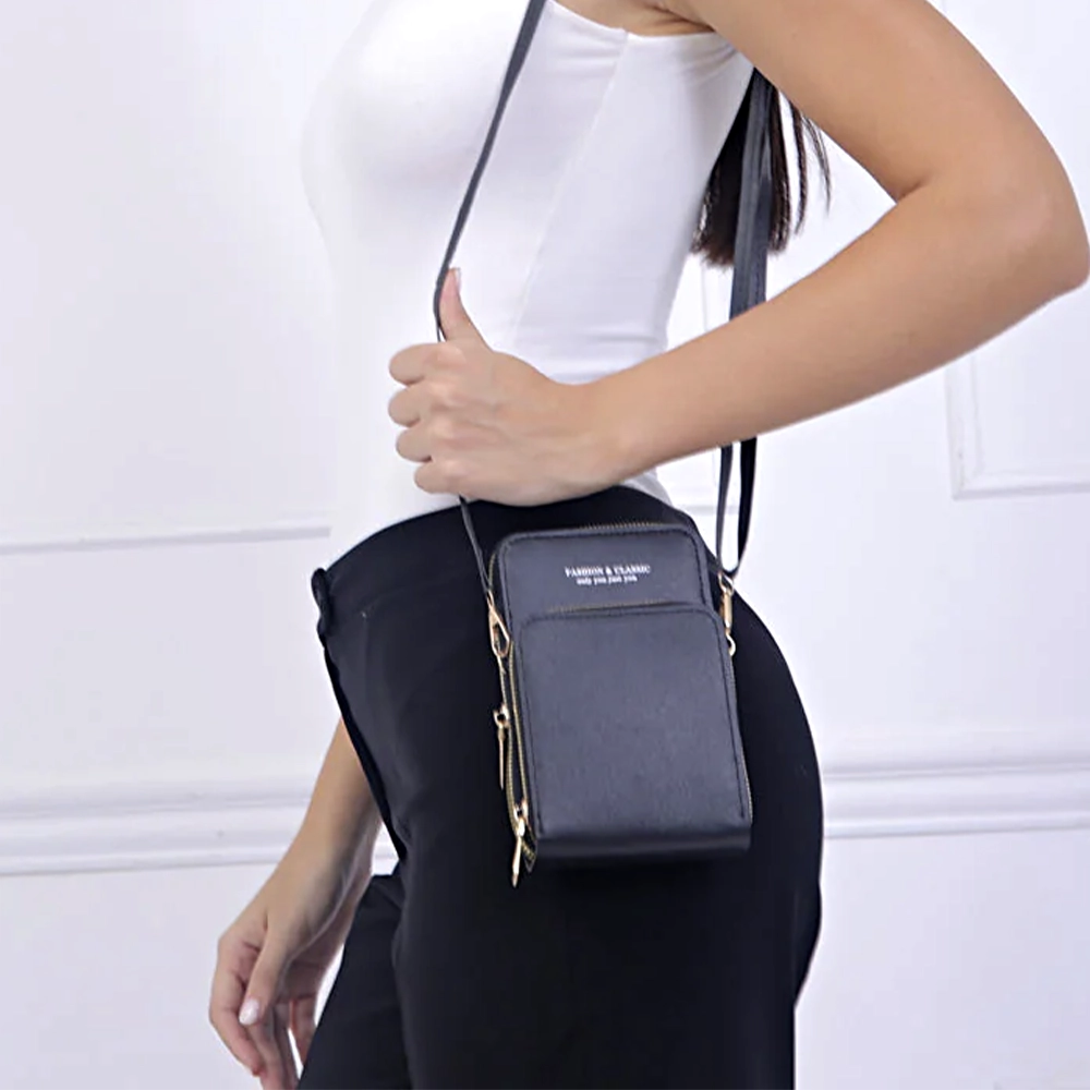 BILLETERA BANDOLERA CON PORTA CELULAR Y CORREA REGULABLE