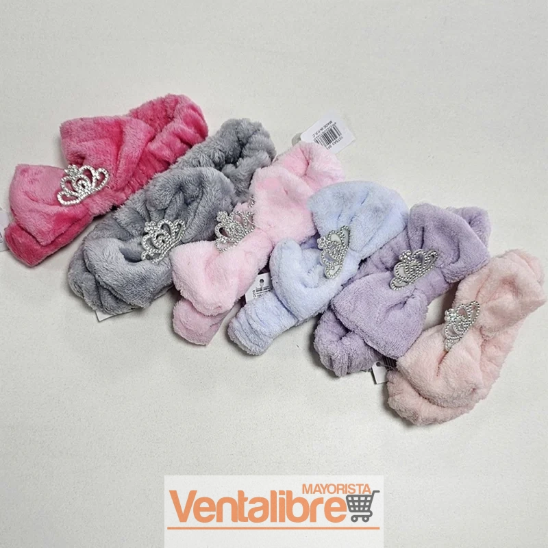 VINCHA ELÁSTICA PELUCHE CON MOÑO CORONITA cantidad