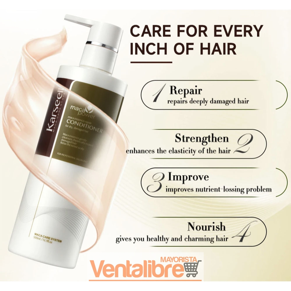 Acondicionador Karseell. Se trata de un acondicionador reparador diseñado para nutrir profundamente el cabello seco y dañado, ayudando a controlar el frizz y a restaurar su vitalidad.