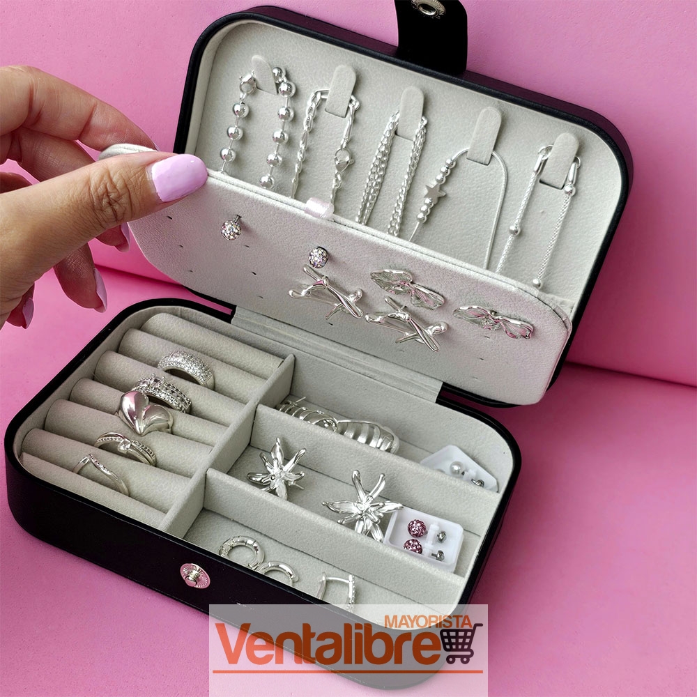 ALHAJERO PARA JOYAS DOBLE TAPA CUERINA 16X11X5 CM. COLORES