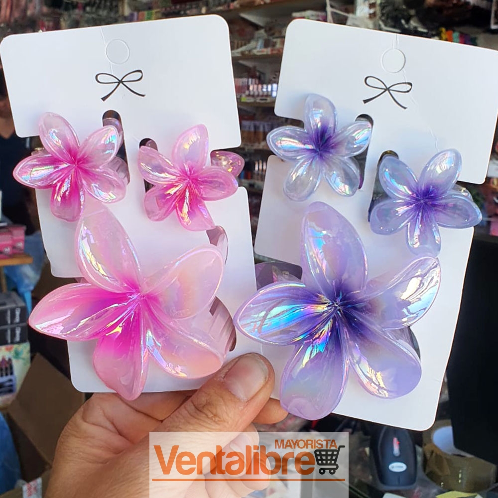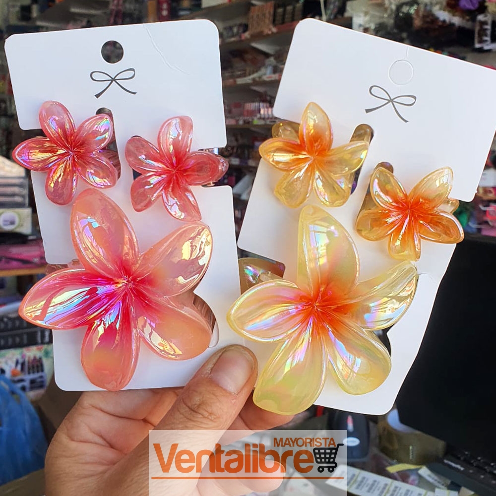 BLÍSTER DE 3 BROCHES FLOR HAWAIANA EXCELENTE CALIDAD