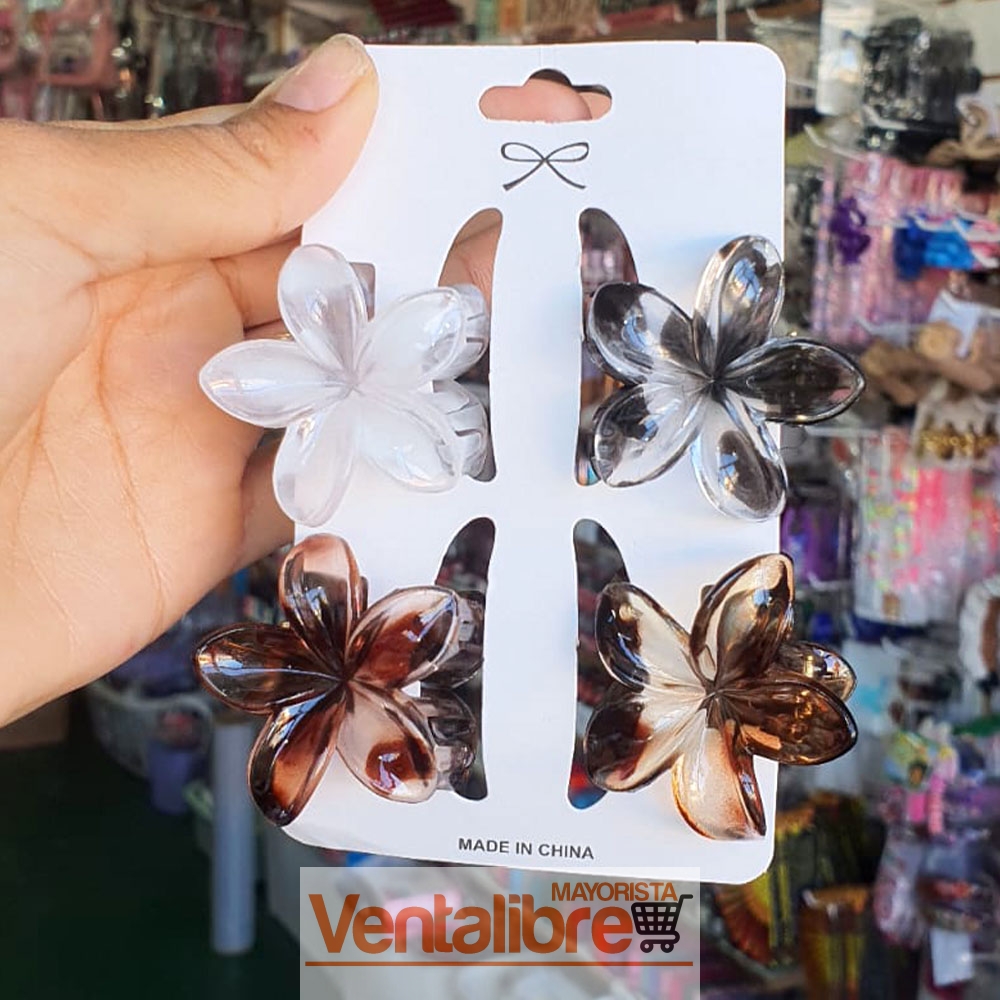 BLISTER X 4 BROCHES FLOR HAWAIANA COLORES EXCELENTE CALIDAD