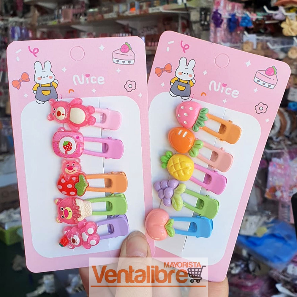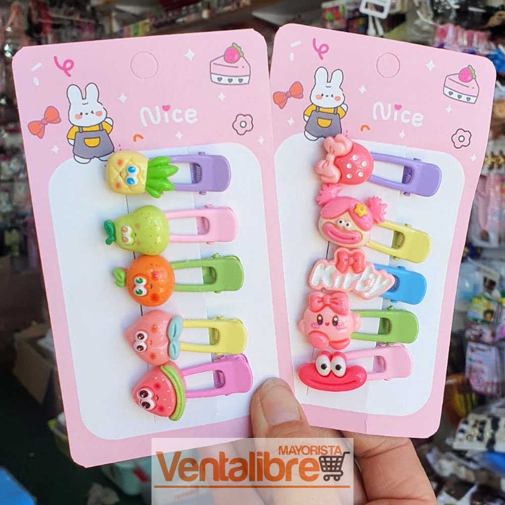 BLÍSTER X 5 HEBILLAS CON PERSONAJES EXCELENTE CALIDAD