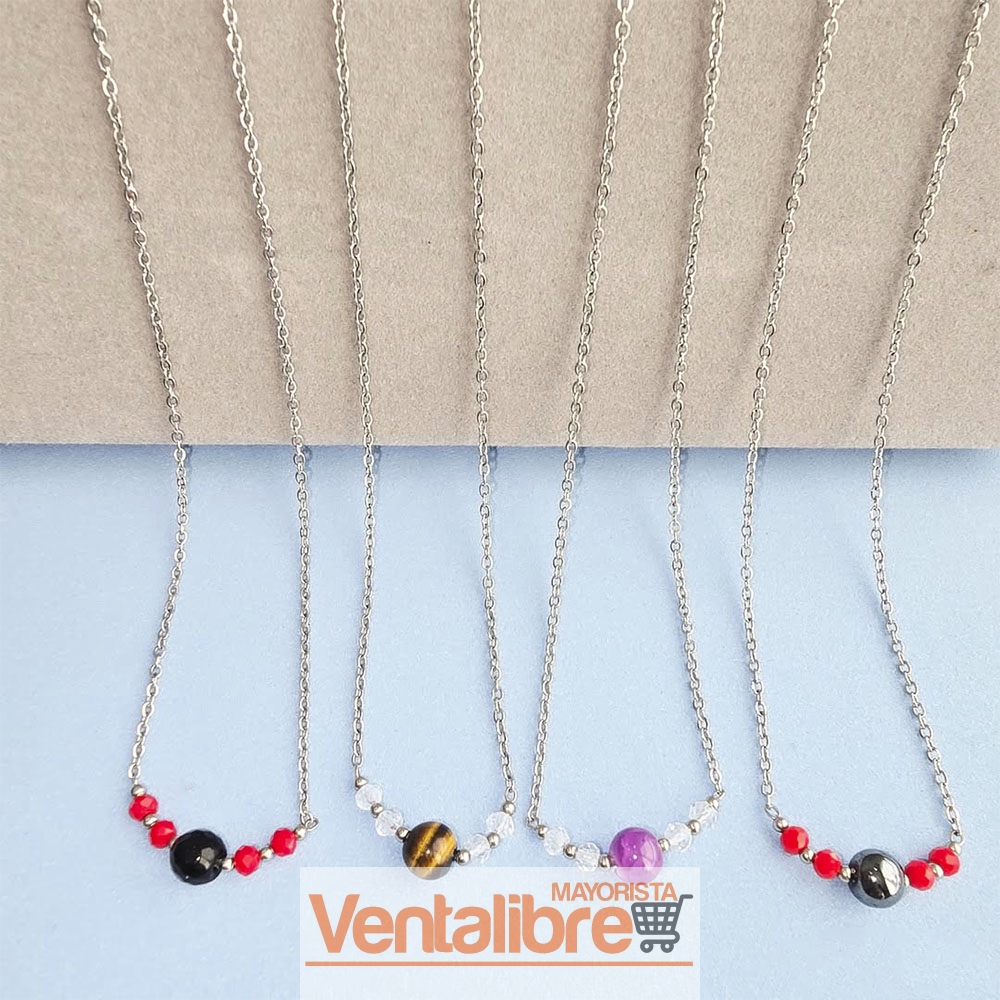 CADENA DE ACERO QUIRÚRGICO CON DIJES PIEDRA Y CRISTALES 50 CM.