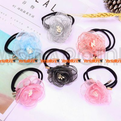 Colita negra para el pelo, presenta un tacto liso suave y fino, con forma de doble tira para un mayor ajuste. La flor está puesto en el medio de las colitas, dando un efecto de delicadeza.