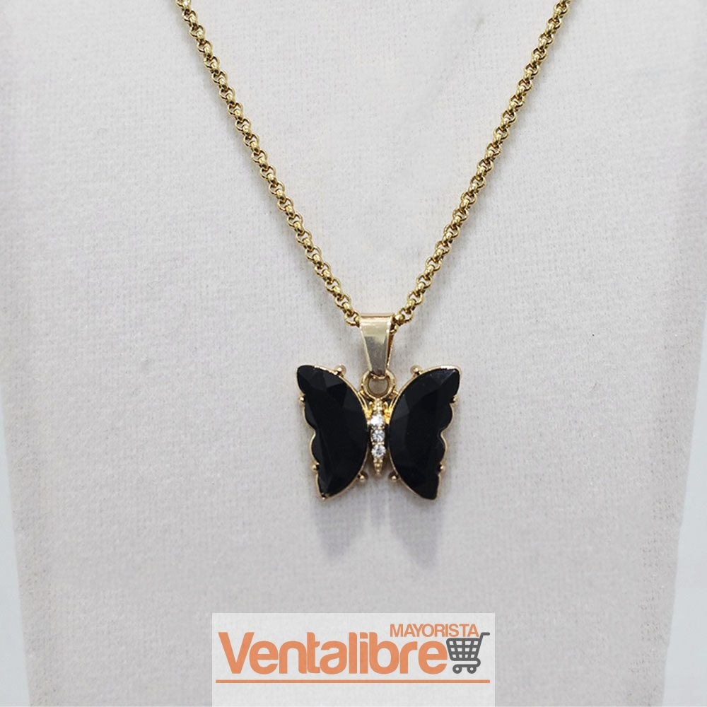 DIJE DE ACERO DORADO MARIPOSA CON CUBIC NEGRO 22 MM.