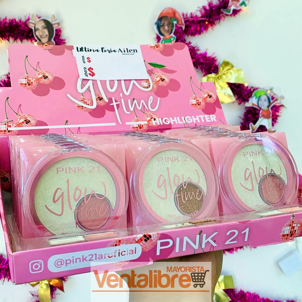 Iluminador llamado “Glow Time”. Se utiliza para resaltar las facciones del rostro y dar un toque de luminosidad a la piel.