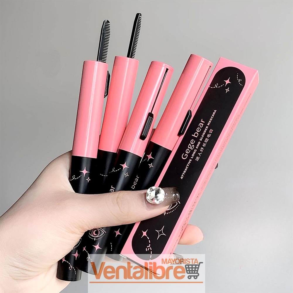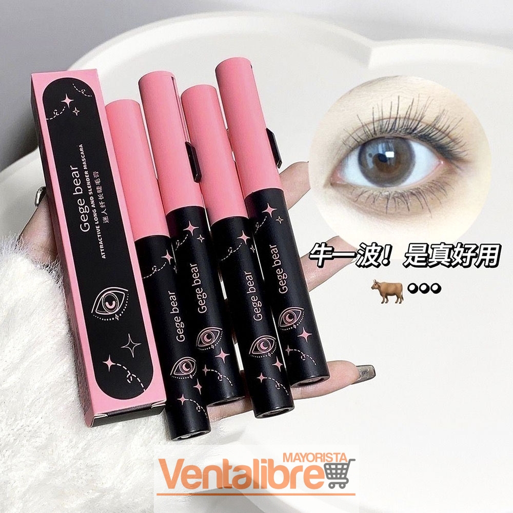 Envase rosa de inspiración kawaii con fórmula de copolímero de estireno/acrilatos a prueba de agua, varilla de cerdas finas de precisión para una aplicación sin grumos, sistema de hidratación dual con glicerina, agentes acondicionadores de cera de abejas naturales y fácil extracción a pesar de su resistencia al desgaste superior de 12 horas.