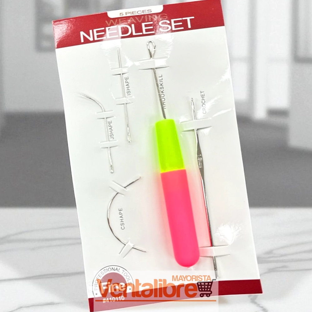 Juego de agujas para tejer extensiones de cabello (Weaving Needle Set). Estas herramientas están diseñadas para la aplicación profesional y segura de extensiones capilares.