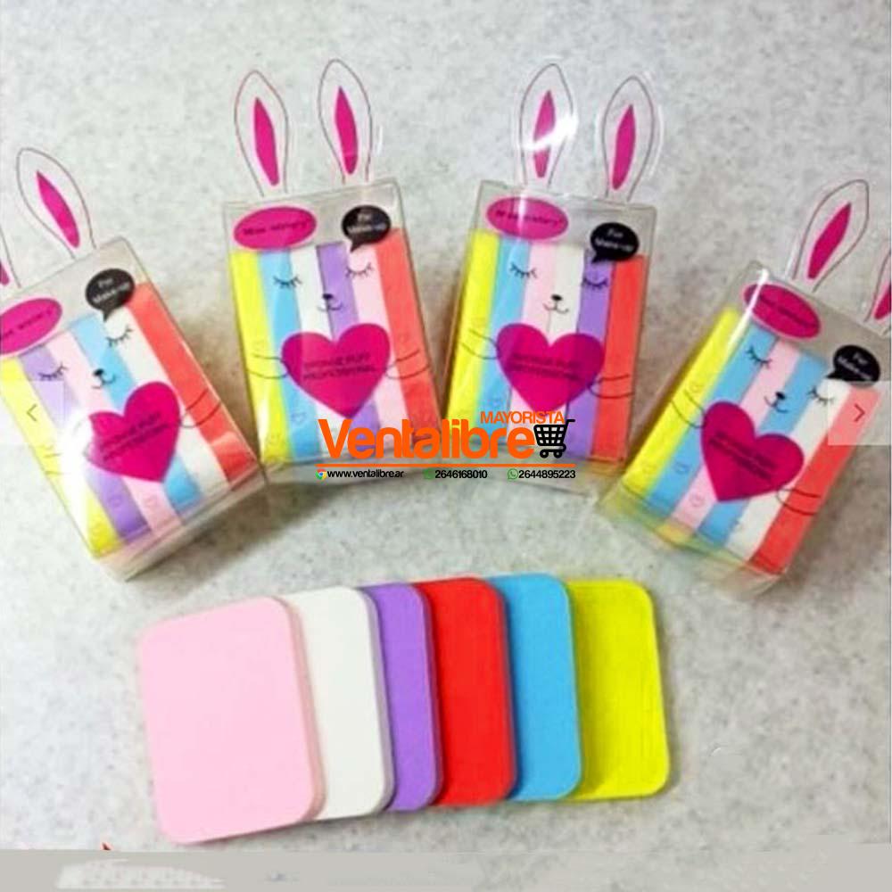 SET DE ESPONJAS PARA BASES DE MAQUILLAJES VARIOS COLORES X 6 UNI. cantidad