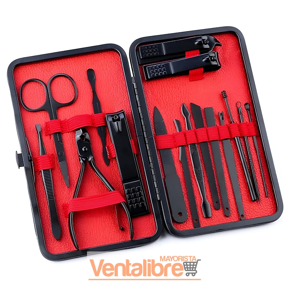 SET DE MANICURA 17 PIEZAS DE ACERO INOXIDABLE DE ALTA CALIDAD EN ESTUCHE