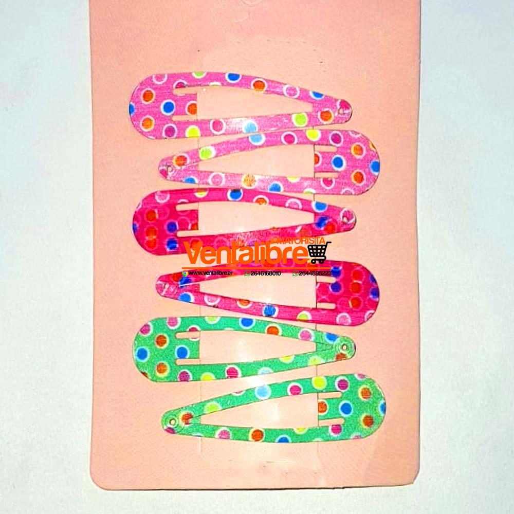 TRABAS TIC TAC 5 CM. CON LUNARES PASTELES X 6 UNI. cantidad