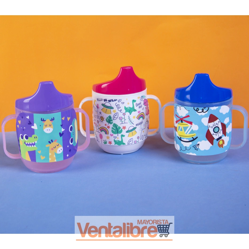 VASO ESTAMPADO 250CC. CON ASAS & TAPA CHUPETÓN